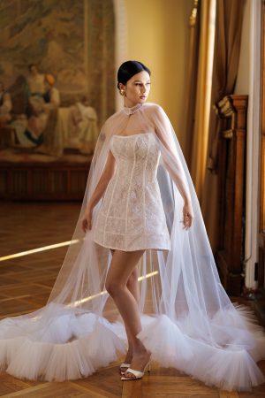 «Kendi» — кружевное короткое свадебное платье с прозрачной накидкой